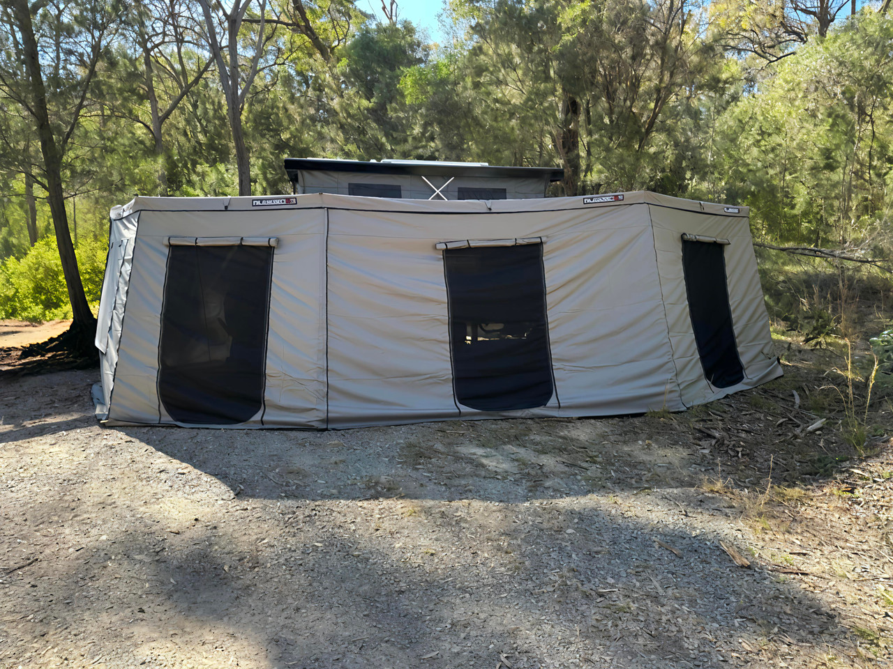 The new Rugged 4x4 Max awning wall kit provides both privacy and excellent airflow with its large windows. These windows can also be used as doors, offering great versatility. Our awning wall kits are designed to protect you from the harsh Australian elements while allowing for maximum airflow when needed.